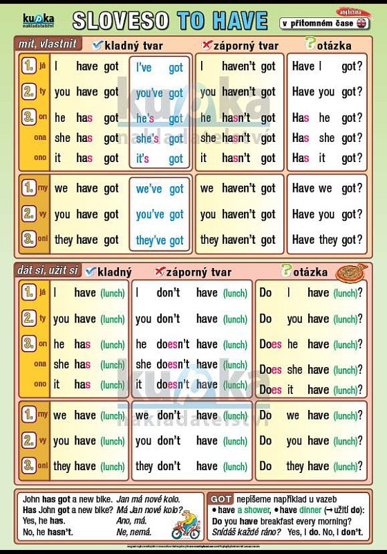 - tabulky časování ve významu – mít, vlastnit (have got)
