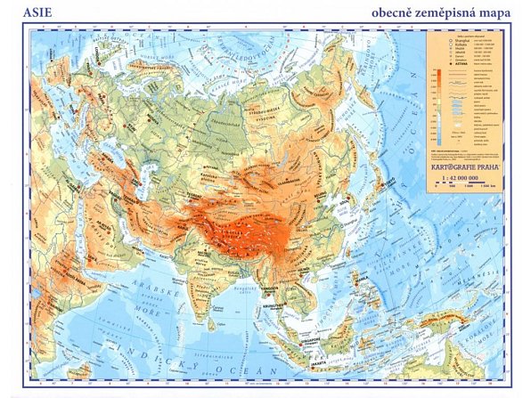 Asie – příruční fyzická mapa (420x297 mm)