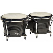 Bonga 7,5" + 6,5", dřevěné korpusy, laditelné blány, robustní ocelové chromové ráfky, barva černá. Blány z králičí kůže. Včetně ladicího klíče.