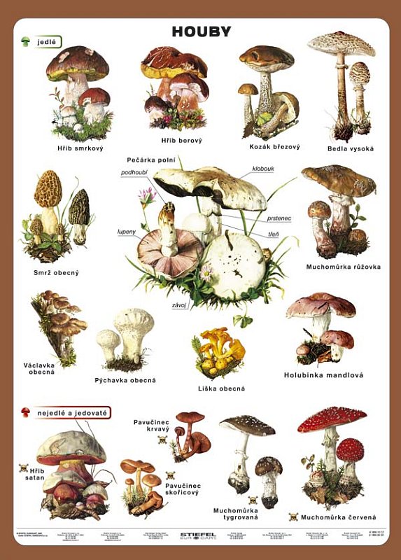 Naučná tabule Houby je součástí souboru naučných tabulí určených pro předmět přírodověda. Didaktická pomůcka může sloužit jako názorná pomůcka při výkladu učitele nebo při samostatné práci žáků. Napomáhá při osvojení potřebných základních vědomostí o přírodních společenstvích lesa. Žáci se naučí rozpoznávat naše nejznámější jedlé a jedovaté houby a porovnávat je podle charakteristických znaků. Obsah naučné tabule tvoří ilustrace vybraných hub: hřib smrkový, hřib borový, kozák březový, bedla vysoká, smrček jedlý, žampion polní, muchomůrka načervenalá, václavka obecná, pýchavka obecná, kuřátko jedlé, holubinka mandlová, pavučinec krvavý, pavučinec skořicový, muchomůrka tygrovaná, muchomůrka červená a hřib satan. Zadní strana naučné tabule slouží na přezkoušení.