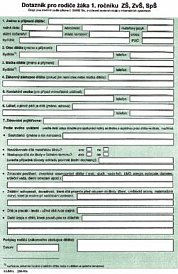 Dotazník pro rodiče žáka 1. ročníku ZŠ, ZvŠ, SpŠ