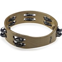 Tamburína o průměru 8", dřevěný březový rám, dvě řady nerezových plíšků.