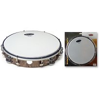 Tamburína o průměru 10" s laditelnou blánou, plastové tělo, 2 řady plíšků, barva přírodní.