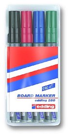 | Tabulový popisovač s kulatým hrotem, inkoust se slabým zápachem, barvy 001 - 010, znovu naplnitelnlý v barvách 001 - 004. Tloušťka čáry cca 1.5 až 3 mm. Lze ponechat několik dní bez nasazeného uzávěru, aniž by hrot zaschl. Hliníkové tělo. 250/4 S - 4 kusová sada, barvy 001 - 004. 250 N - náhradní hroty. |