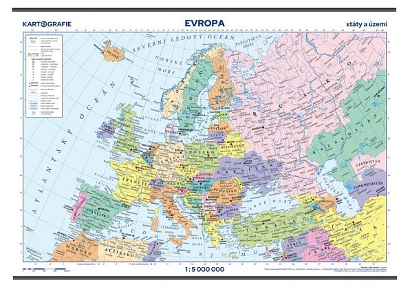Evropa v měřítku 1 : 5 000 000 v politickém provedení