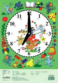 Hodiny - barevné - zvířátka - karta A4 - ručičky hodin se otáčí