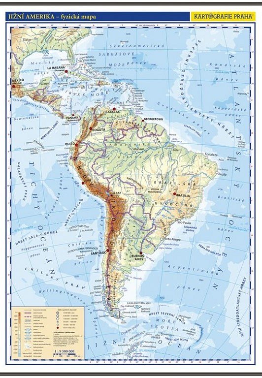 Jižní Amerika 1 : 9 500 000 ve fyzicko-geografickém provedení