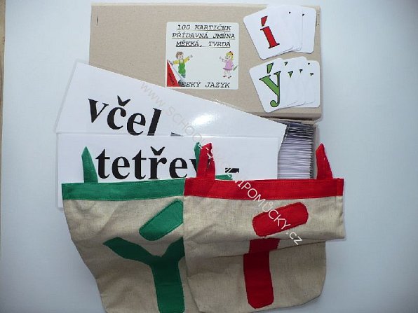Soubor tvoří 100 laminovaných kartiček se slovními spojeními vhodných k procvičování probraných druhů přídavných jmen - sada dále obsahuje 66 jednostranných kartiček s "í" a 34 jednostranných kartiček s "ý", dvě barevně rozlišené taštičky s všitým magnetem a poutky, ve kterých jsou kartičky s "í" a s "ý" uloženy - lze využít pro samostatnou i skupinovou práci - využití: magnetická tabule - kartičky se slovy jsou podlepeny magnetickými proužky - není potřeba dalších magnetů pro připevnění na magnetickou tabuli (ostatní kartičky "í" a "ý" tento proužek nemají) - velikost: karty se slovy 108x303mm, kartičky s písmenky 50x60mm