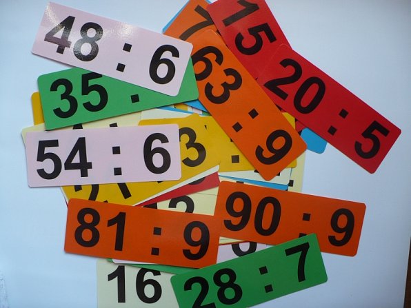 Sada obsahuje 100 příkladů (10x10) na dělení, které jsou barevně rozlišeny - lze využít k procvičování