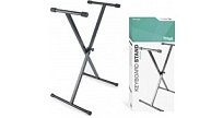 Klávesový stojan, nastavitelná výška 63 - 97 cm v pěti polohách, maximální nosnost 30 kg, průměr trubky 25 mm, hmotnost: 2,88 kg. Barva černá.