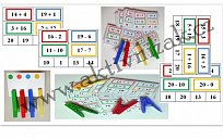 Učební pomůcka je určena k individuálnímu procvičování příkladů na sčítání a odčítání v oboru čísel do 20 bez přechodu desítky s využitím 4 barevných kolíčků.