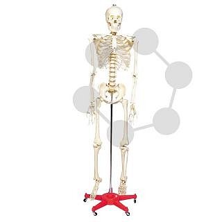Lidská kostra z neroz­bitné­ho plastu. Naturál­ní odlitek prvot­řídní mužské kostry se znázor­něním trhlin, dutin a anato­mických detai­lů. Lebka se dá rozlo­žit na lebeční klenbu, lebeční spodinu a dolní čelist. Posta­vení zubů odpoví­dá chrupu dospě­lého člově­ka. Lebku, nohy a ruce lze odejmou­t.