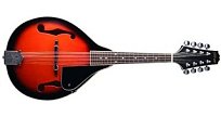 Bluegrassová mandolína. Vrchní deska lípa, dva ozvučné otvory ve tvaru "f", spodní deska a luby lípa, krk nato, hmatník palisandr, nastavitelná kobylka mořený javor, niklovaný struník s ozdobnou rytinou, mechanika otevřená niklovaná, ladění G-G-D-D-A-A-E-E. Barva violinburst.