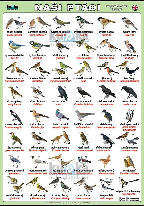 Naši ptáci v češtině a angličtině (100 x 70 cm)