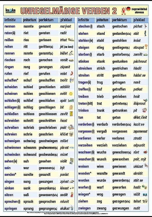 Nástěnný obraz pro výuku německých nepravidelných sloves Unregelmäßige Verben (2. část)