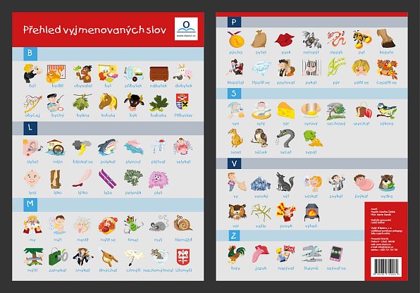 Přehledová karta vyjmenovaných slov obrázkově zpracovaná pro snadné zapamatování vyjmenovaných slov B, L, M, P, S, V, Z.