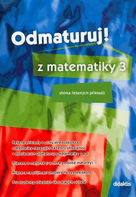 Poutavá učebnice určená k přípravě na maturitu (i k nové podobě maturity) a k přijímacím zkouškám na vysoké školy Obsahuje řešené příklady k celé středoškolské látce matematiky, která je teoreticky obsažená v titulech Odmaturuj z matematiky 1, 2. Snadnou orientaci v knize podporuje grafické odlišení jednotlivých částí řešených příkladů, které tvoří zadání, podrobný postup řešení, komentáře k postupu řešení, výsledek, názorné obrázky