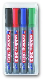 Tabulový popisovač se seřízlým hrotem, inkoust se slabým zápachem, barvy 001 - 004, znovu naplnitelnlý.Tloušťka čáry cca 1 - 5 mm.