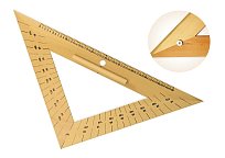 Trojúhelník dřevěný 45* s úhloměrem, na zadní straně u jednotlivých vrcholů opatřený magnety.