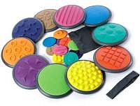 Barevné taktilní kotouče napomáhají rozvíjet hmatové vnímání dětí a učí je rozeznávat různé povrchové struktury. Hry mohou být upraveny tak, aby odpovídaly věku dítěte a úrovni jeho schopností. Sada disků je praktická pomůcka na senzomotorická cvičení pro mateřské nebo základní školy, relaxační centra, sportovní a školská zařízení nebo tělovýchovné organizace.