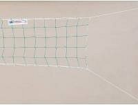 Tréninková síť pro školy. Uzlová síťovina zelená z polypropylenu 2 mm, oko 10 cm. Bez pásky, jen obšití. K horními a spodnímu okraji je přišita PA bílá šňůra o délce 12,5m, která tvoří úvazky sloužící k připevnění ke sloupkům.