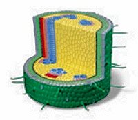 Na 250x zvětšeném modelu příčného řezu stonkem jsou znázorněny typické struktury.