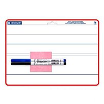 Linky a pomocné linky na přední straně tvoří šablonu pro nácvik správných poměrů psacích i tiskacích písmen. Zadní strana tabulky je učena k malování. Sada obsahuje tabulku, stírací textilii a dva značkovače s ERGO držením