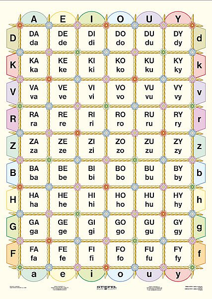 Didaktická pomůcka je určena pro 1. ročník k aktivní práci v hravé podobě. Přední stranu II. dílu tvoří barevná tabulku se slabikami vytvořenými kombinací šesti samohlásek a devíti souhlásek, které se prvňáci učí v průběhu druhého pololetí školního roku. Tabulka v sobě ukrývá i množství slov, která se dají ze slabik a písmen složit. Některá slova je možné najít hravě, některá naleznou ti šikovnější… a ješte více slov se vytvoří v propojení s prvním dílem naučné tabule „Učíme se číst“. Zadní strana obsahuje příkladová slova k procvičování čtení slov se skupinou bě, pě, vě, mě, dě, tě, ně. Naučná tabule spolu s prvním dílem tvoří vhodnou pomůcku k trvalému vyvěšení. Formát: 100 x 140 cm