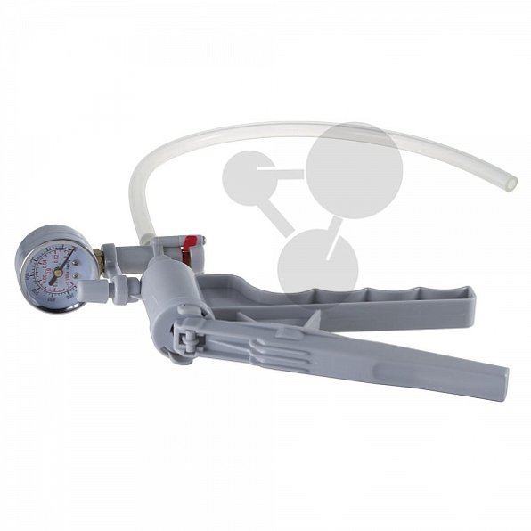 Jednoduchá mechanická vakuová vývěva, k vakuování menších recipientů v oblasti hrubého vakua. S integrovaným zavzdušňovacím ventilem a manometrem s ukazatelem.