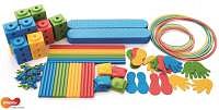 Balení obsahuje: 8x Cihla - Kostka, 12x Cihla poloviční, 4x Modrá lávka, 4x Obruč 35 cm, 4x Obruč 60 cm, 16x Tyčka 35 cm, 8x Tyčka 70 cm, 12x Spojka A, 12x Spojka B, 10x Házecí polštářek, 6 párů Značka noha - šlápota, 6 párů Značka ruka - dlaň