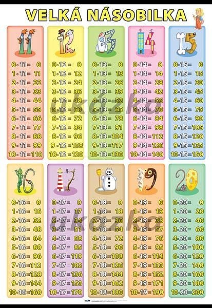 Nástěnný obraz pro výuku násobilky na základních školách i k domácímu využití.