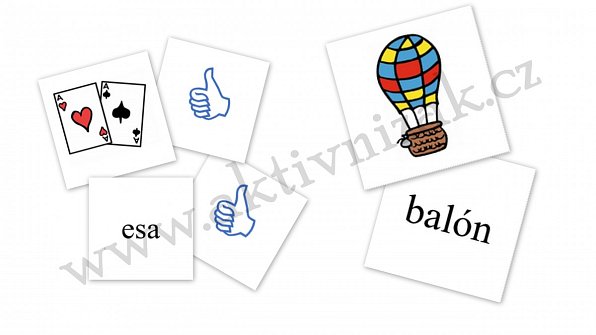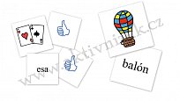 Děti přečtou slovo na kartičce a vyhledají obrázek, který označuje jeho význam. Slova jsou psaná malým tiskacím písmem. Soubor obsahuje 22 sáčků různého obsahu. V závěru mohou kartičky otočit a zkontrolovat si, zda jejich řešení je správné.