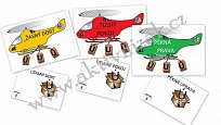 Děti pracují samostatně. Upevňují kolíček na správné U/Ú/Ů, které patří do slovního spojení na vrtulníku. Správnost řešení si ověřují na druhé straně kartiček.
